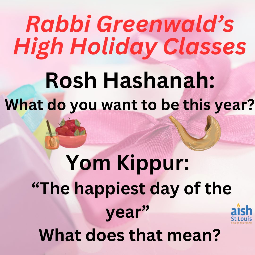 Join me for an inspiring discussion on how Rosh Hashana is a time for renewal and how we all have a chance to embrace the light within us so that it can shine brightly in the year ahead. Questions? Call us at (314) 862-2474 or email cgoldstein@aishstl.com Friday, October 4 11:00 am Nusach Hari […]