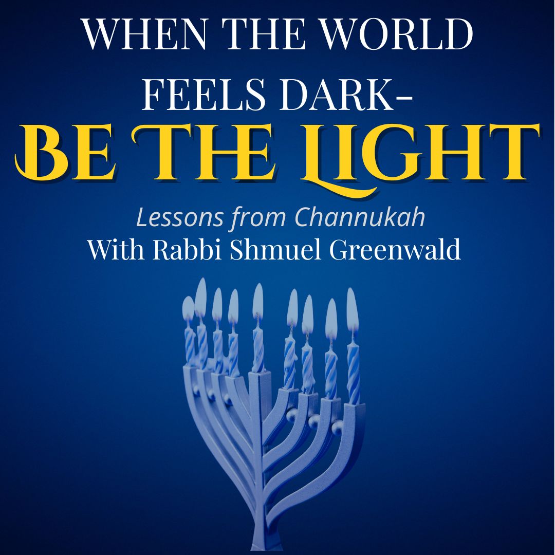 “When the World Feels Dark — Be the Light! — Lessons from Chanukah with Rabbi Shmuel Greenwald Dec 9 7:30 pm - 9:00 pm “When the World Feels Dark — Be the Light! — Lessons from Chanukah with Rabbi Shmuel Greenwald